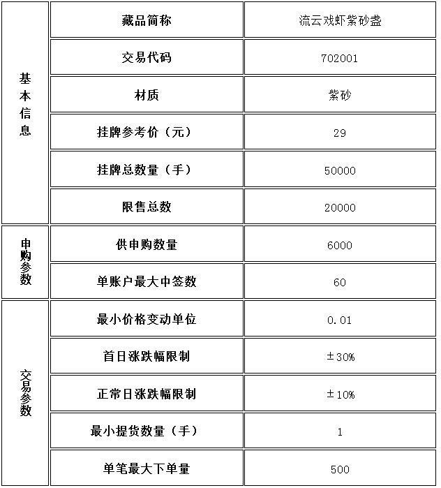 4、中簽公布日,本交易所將公布申購當(dāng)日參與某一藏品申購的所有交易會員的申購數(shù)量,以及參與某一品種申購的總資金量;